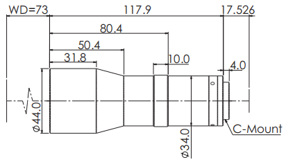TS Series Large FOV Bi-telecentric Lenses F6.0 Mag. 0.438x MTF30 130lp/mm 0.31kg OPT-TS0438-73